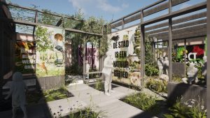 Paviljoen, tuin en expositie worden door Overtreders W uitgewerkt in nauwe samenwerking met Kossmandejong, de Onkruidenier en tuinontwerper Joost Emmerik. Uitgangspunt voor deze Floriade inzending is een geïntegreerd ontwerp waarbij alle onderdelen, paviljoen, tuin en tentoonstelling, onlosmakelijk met elkaar verbonden zijn en met elkaar samensmelten tot één ruimtelijke gelaagde vertelling die kan worden ervaren met zoveel mogelijk zintuigen. De vraag naar een andere relatie met de natuur in de (groene) stad van de toekomst staat daarbij centraal. De thematiek wordt uitgewerkt met een film, podcasts en inspirerende voorbeelden over een nieuwe relatie tussen stad en natuur in Almere en Amsterdam. Deze voorbeelden kunnen tijdens Floriade in Almere en Amsterdam worden bezocht aan de hand van een plattegrond van de regio.